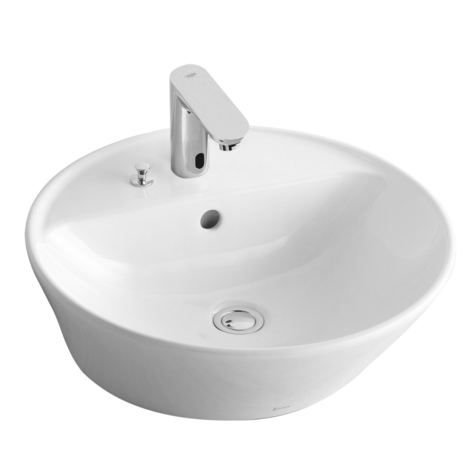 丸みを帯びたやわらかなデザインが特徴のサークルライン洗面ボウル。 背面釉薬付きですので壁から離して自由に設置頂けます。
