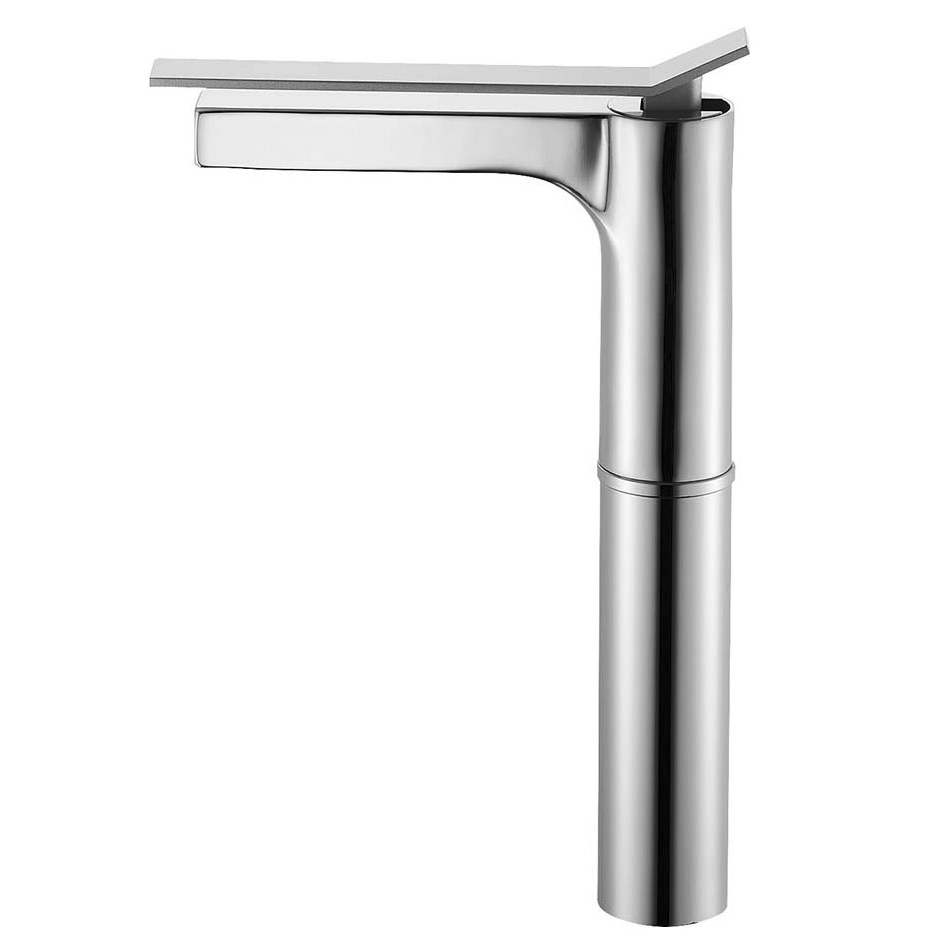 スパウトと平行にのびたロングハンドル。衝撃に強いアルミダイキャストを採用しています。主張をおさえたシンプルなシルエットは、洗面ボウルを選びません。
