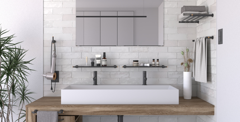 タオルバーやフックなどのアクセサリー類は圧迫感のないフォルムでどんなお部屋にも自然に溶け込みます。
