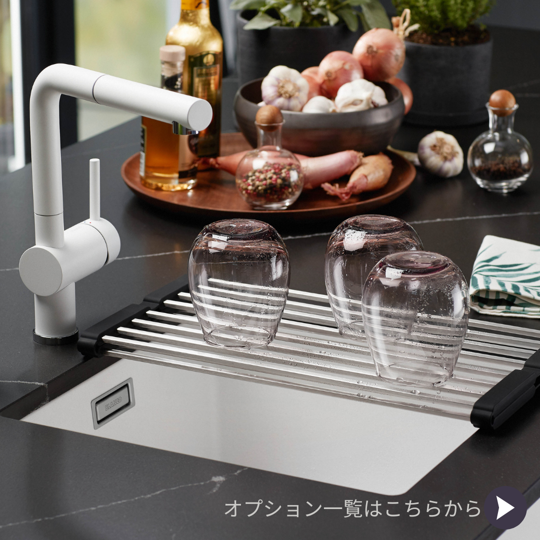 BLANCOの水栓は2モデル7カラーからお選びいただけ、すべてのシンクカラーと同色で揃えられるバリエーションが魅力です。