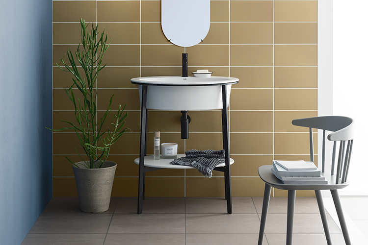 カティーノは、スティール製のフレームに、深くラージサイズの700mmのセラミックシンクと、同じくセラミック製のボトムシェルフをコンビネーション。機能美あふれるエレガントなデザインが特徴です。カティーノコレクションは、権威ある国際的なプロダクトデザイン賞であるRed Dot Design Award 2017を受賞しています。