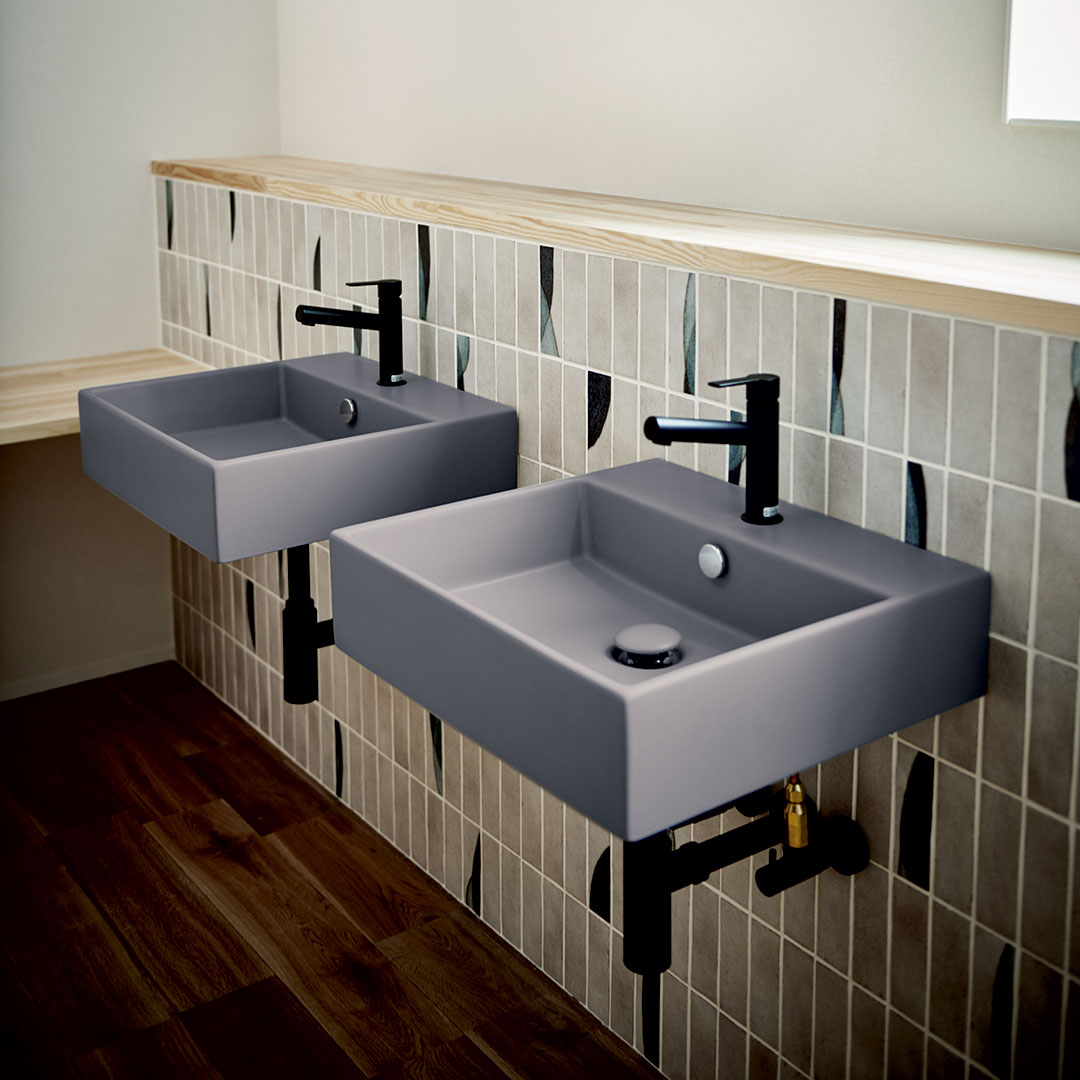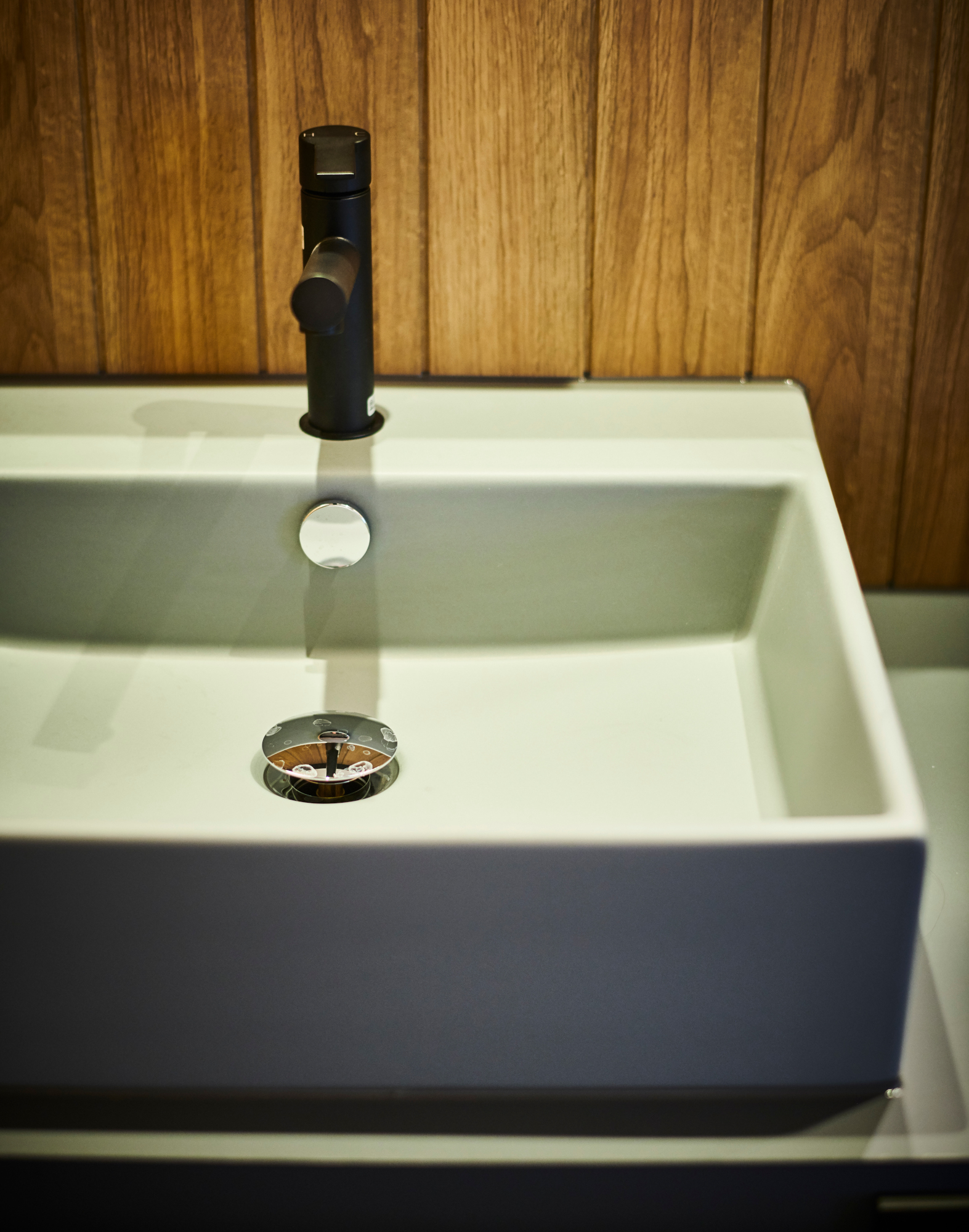 スマイル50は、日本の洗面所にちょうど良い間口500mmのスクエアボウルです。間口400mmでは小さい・600mmでは少し大きいという日本の集合住宅やホテルなどにも最適。カウンター置き・壁付け両方に対応していますので、シンプルなフォルムと相まって、設置場所・テイストを選ばない洗面ボウルです。