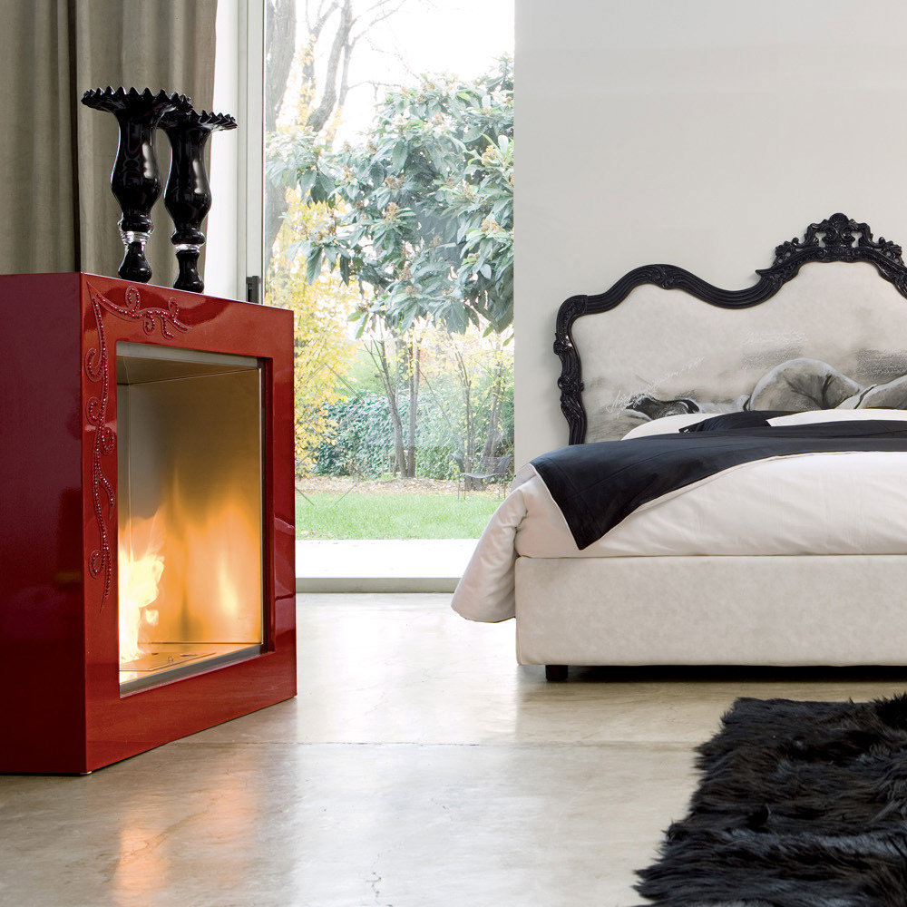 自立式の家具型暖炉で、ステンレススティール製のファイアーボックスの内部に、EcoSmartバーナーを収容できるようになっています。