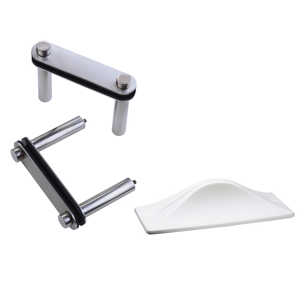 Fire Box使用時に付属のものより高さのあるガラスを設ける際に使用する金物です。ガラスを取付ける為に使用します。固定金物のみですので、別途適切な寸法・材質の強化ガラスを手配ください。