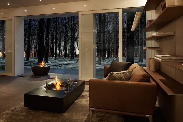 家具感覚で設置できるエコスマートファイヤーは、ただ単に暖房だけでなく、優れたインテリアとして空間を演出します。