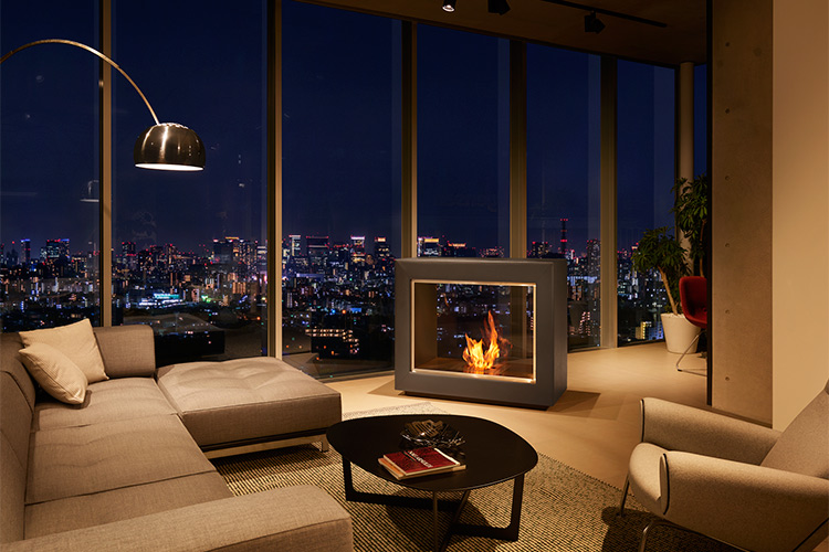 家具感覚で設置できるエコスマートファイヤーは、ただ単に暖房だけでなく、優れたインテリアとして空間を演出します。