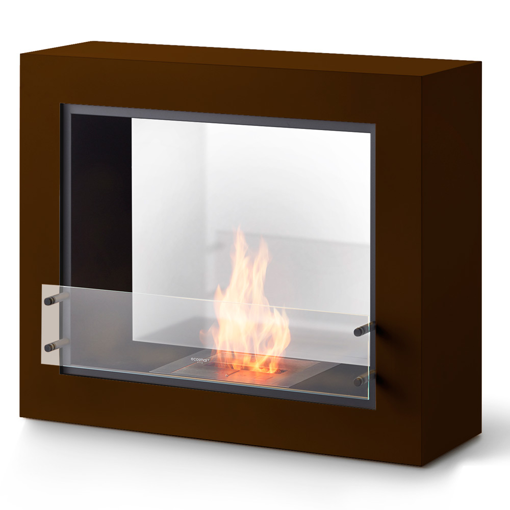 長方形の自立式二面開口型暖炉で、すっきりとしたモダンなラインが特徴です。後面には強化ガラスを使用し耐久性を高めています。