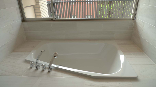 180センチを超えるような体格の良い方でも、余裕の1800×1200サイズでしっかりと受け止め、ゆったりご入浴いただけます。大型浴槽ということで足付きが不安な小柄な方やお子様でも、横向きに入ると足付きを確保でき安心して入浴できますので、様々な体格の方がいらっしゃる家族構成にも対応できます。こちらは右勝手モデルです。