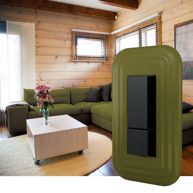 深みのあるレトロカラーが壁面のアクセントに。ホーローのつややかさと発色の美しさを最大限に活かしました。