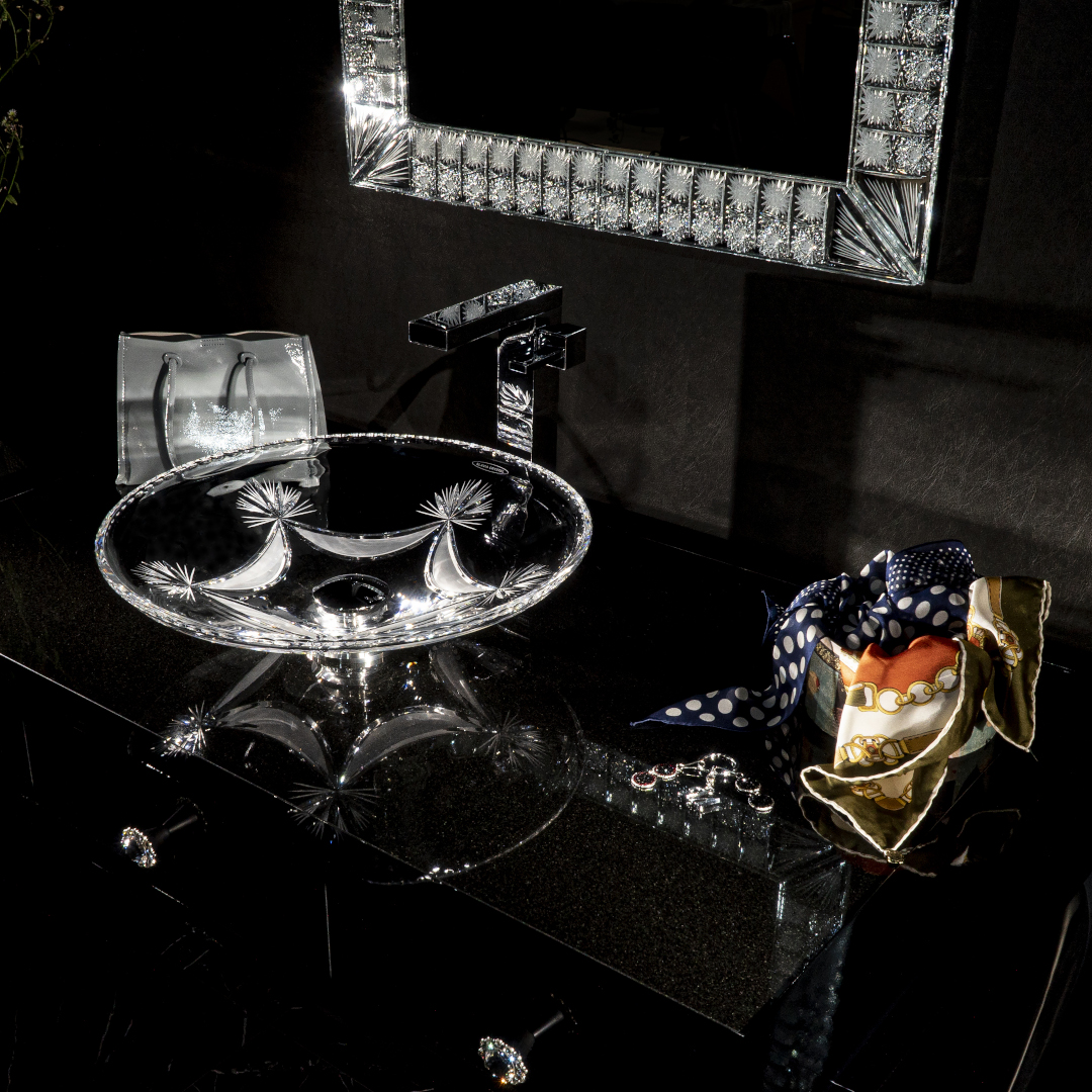 非常に高度なカッティング技術から生まれる洗面ボウルは、どの角度から見ても美しい輝きを放ちます。
