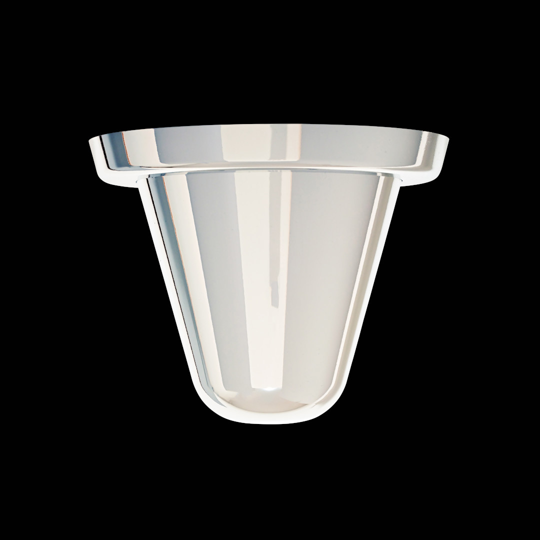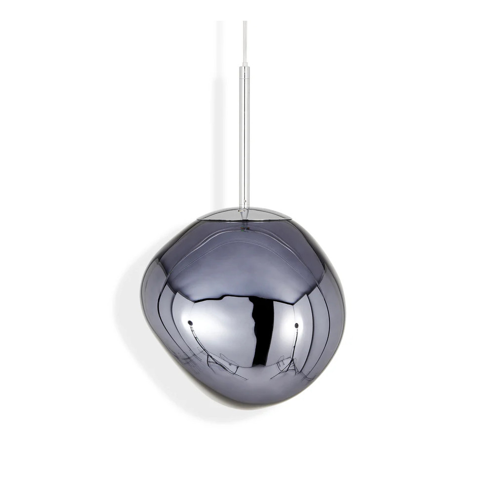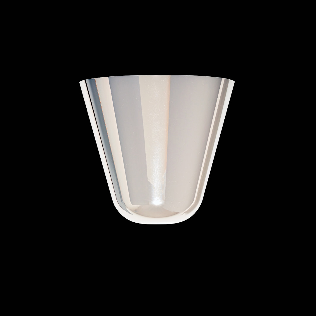シェードの中は特殊な真空蒸着によって塗装され、シェード上部から底部にかけて塗装の濃度を段階的に変えることで、点灯時には、物体が溶けるような視覚効果を生み出し、消灯すると空気を漂う鏡面のオブジェへと変化します。