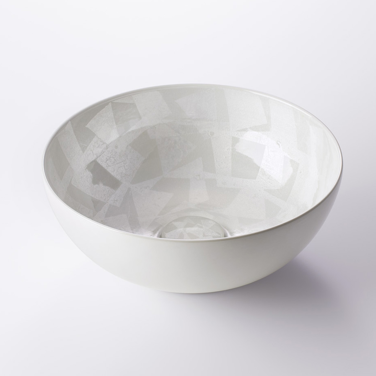 九谷焼の技巧の一つである銀彩を用い、彩り豊かにアレンジした現代の「和」のデザイン。美しい釉薬の下に浮き立つ銀箔が味わいのある光沢を放ちます。