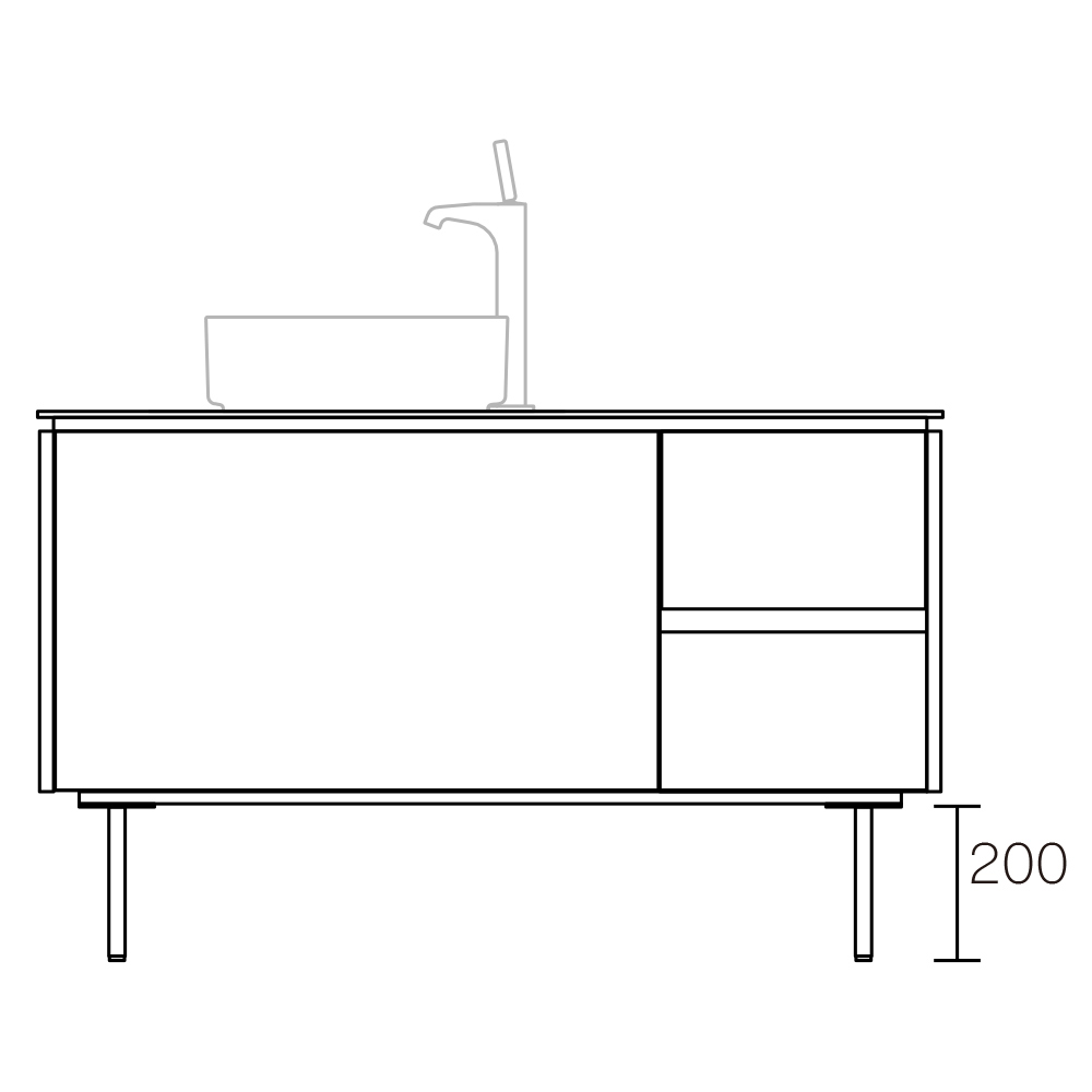 | 材質 | 天板:ウルトラセラミック(DEKTON) 扉:木材(マットペイント仕上) 脚:スチール |