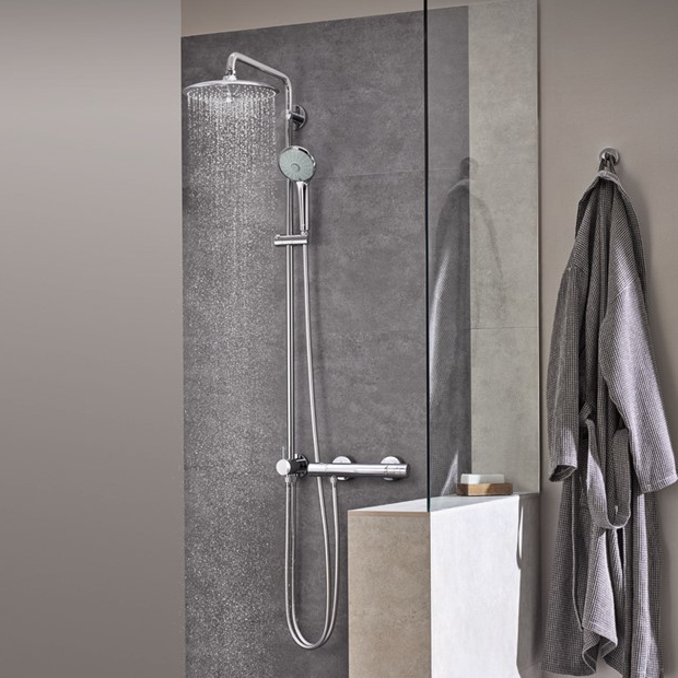 グローエ、ハンスグローエなどのオーバーヘッドシャワー・水栓金具がオールインワンのシャワーシステム。