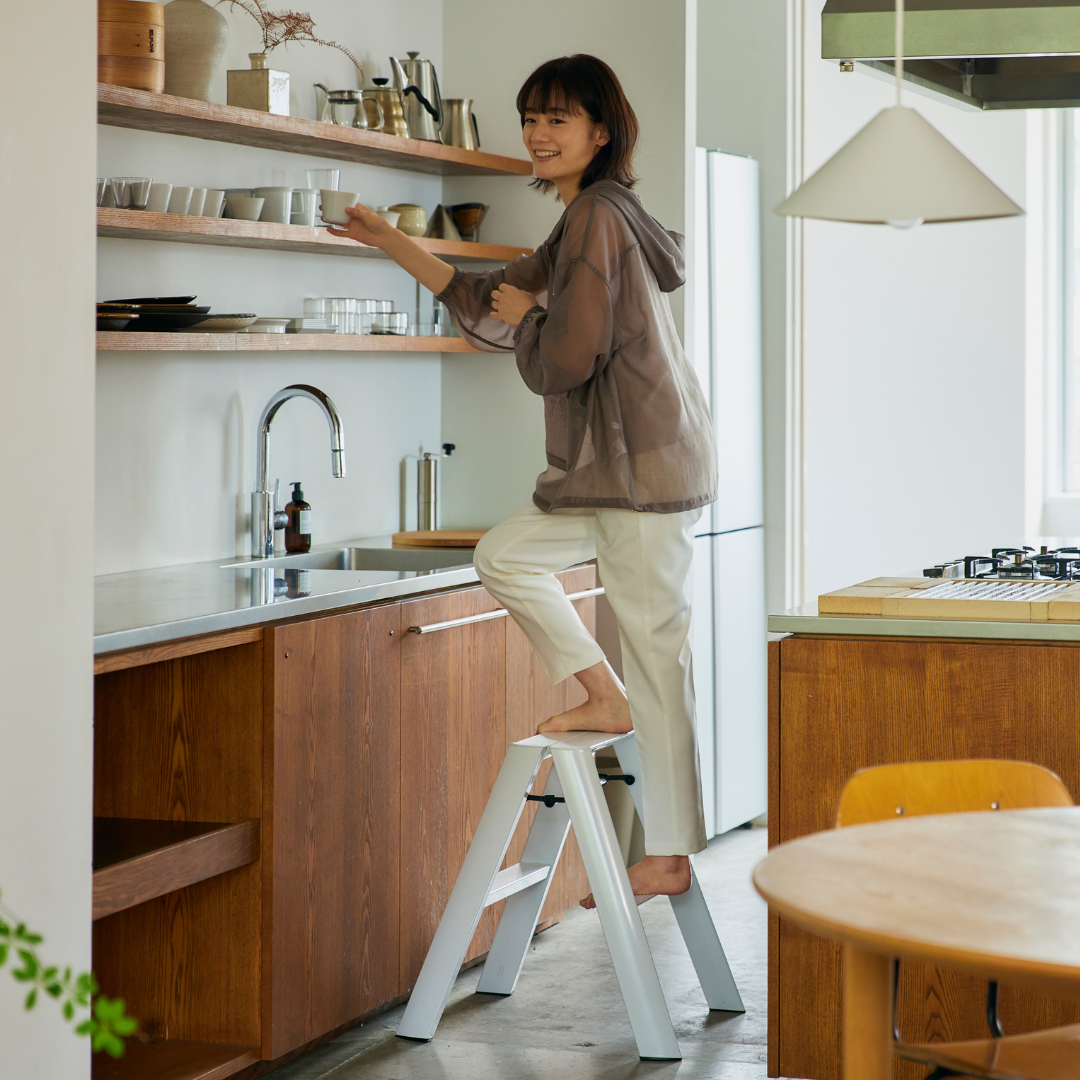 インテリアに美しくなじむデザイン脚立「lucano(ルカーノ)」。