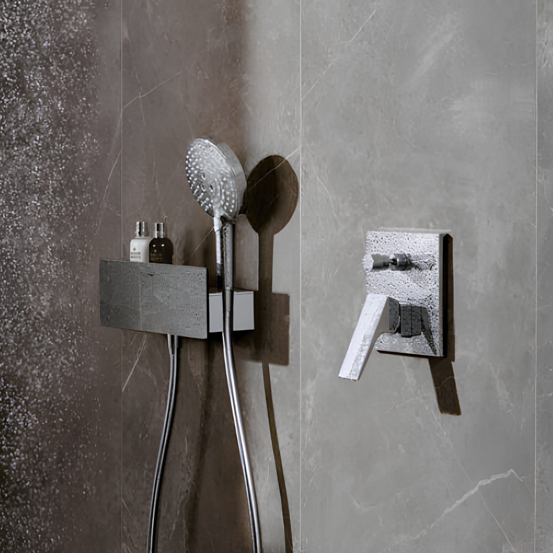 ハンスグローエなど一流のブランドのシャワーヘッド、ホース、混合栓、ウォールバーを一式にまとめた、シャワーセット。