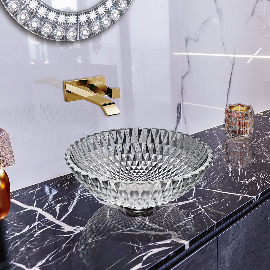 非常に高度なカッティング技術から生まれる洗面ボウルは、どの角度から見ても美しい輝きを放ちます。