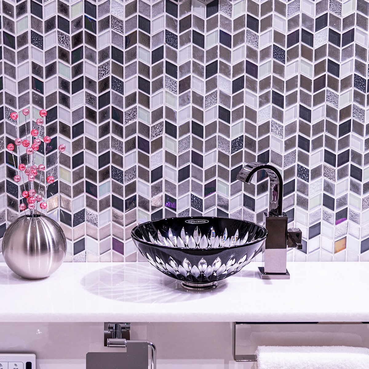 先祖代々受け継がれて来た伝統のボヘミアンクリスタルのカッティング技術による、繊細で美しい輝きは洗面スペースをゴージャスに演出します。