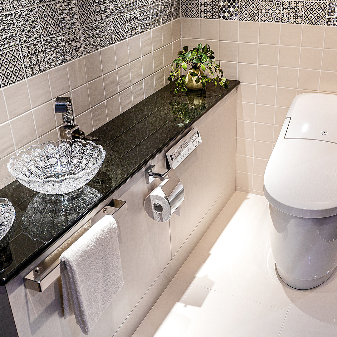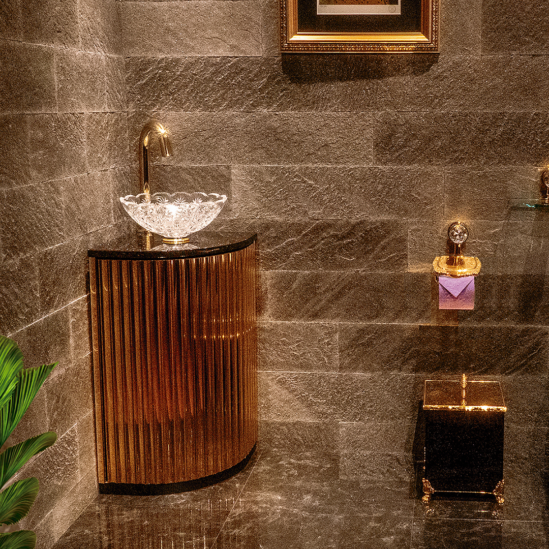先祖代々受け継がれて来た伝統のボヘミアンクリスタルのカッティング技術による、繊細で美しい輝きは洗面スペースをゴージャスに演出します。