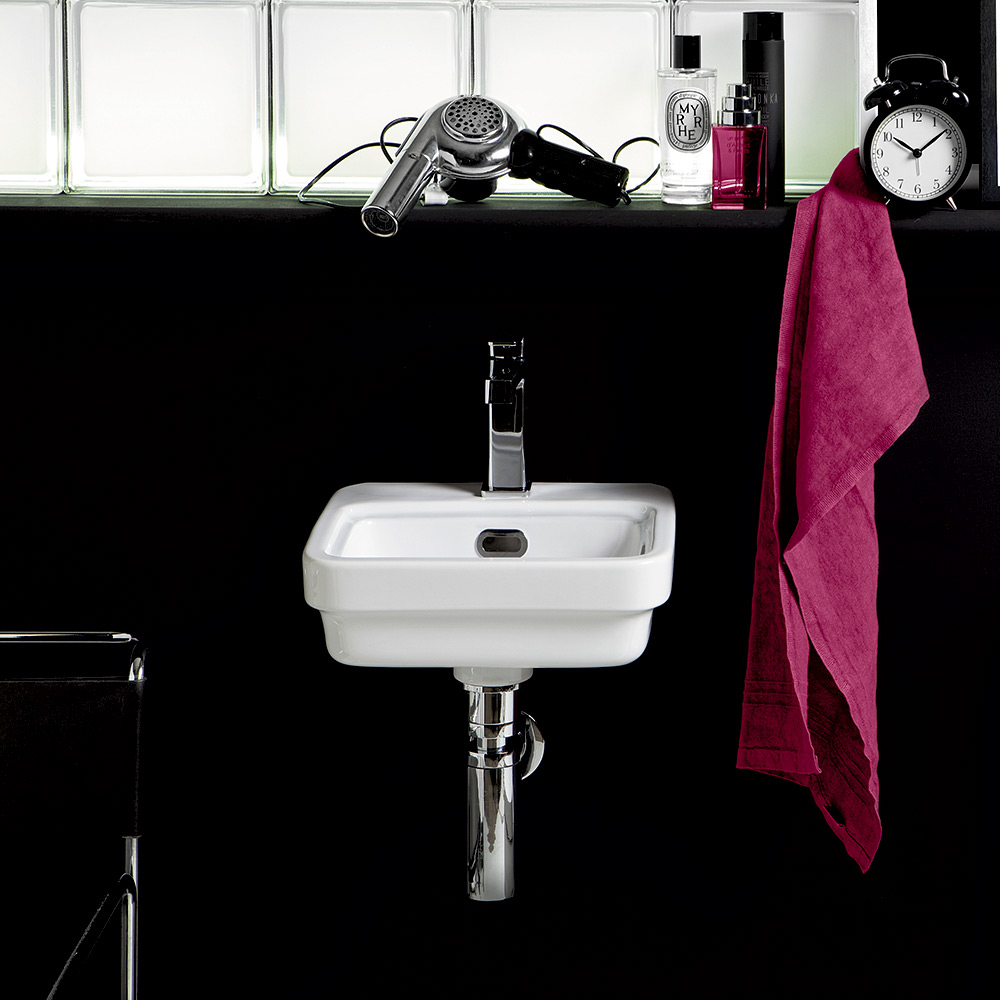 奥行き27cmのスーパーミニマムなサイズは、トイレスペースに最適。クラシックとモダン、どちらのテイストの空間にもフィットし、ミニマルサイズながらエレガントな高級感を感じさせる仕上がりの手洗器です。