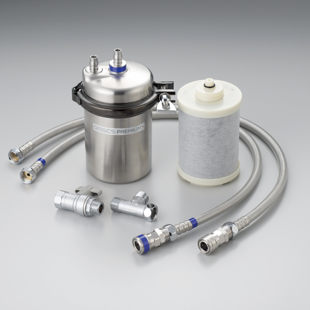 オアシックスプレミアムは、お好きな単水栓を浄水専用の水栓に変身させることが出来る浄水器ユニットです。