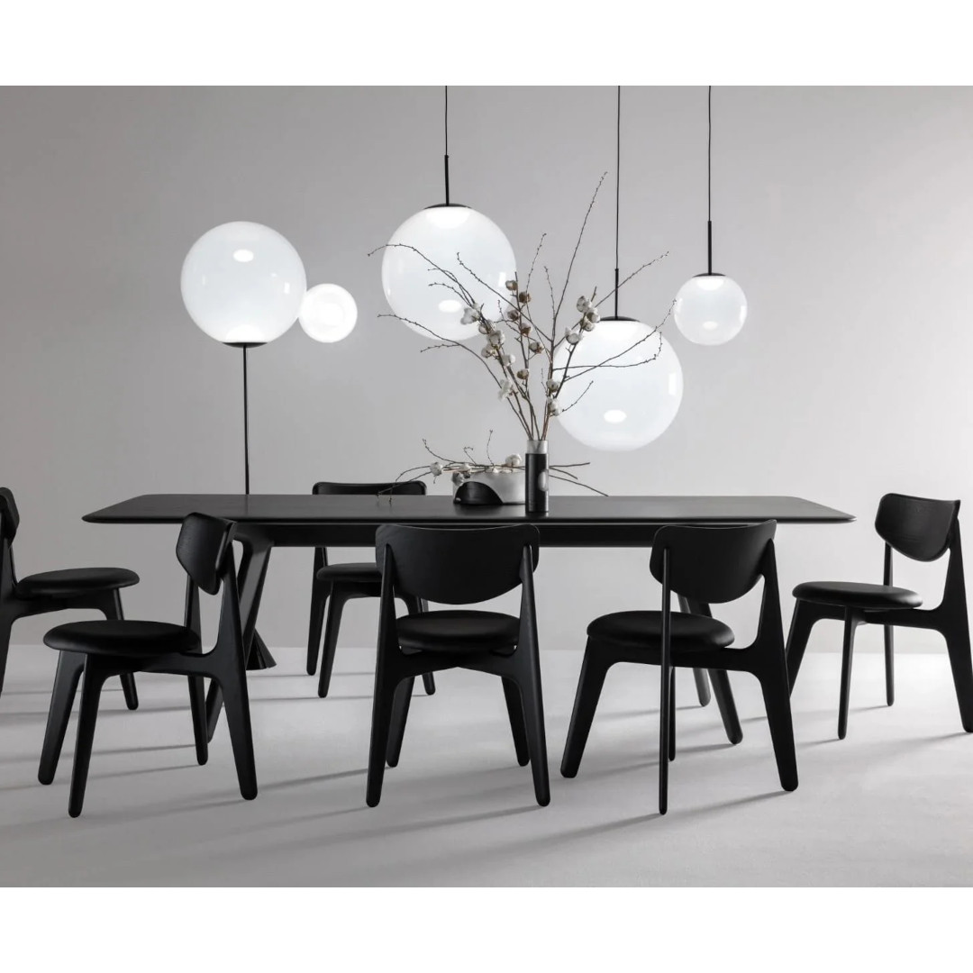 シェードの色が半透明であるがゆえに、昼間は実体のないゴーストのような儚さを保ち、夜になると見事なまでに明るく周囲を照らす球体へと変化します。トム・ディクソンが独自に開発した内蔵型LEDを使用することにより、柔らかく拡散する美しい光を実現しました。