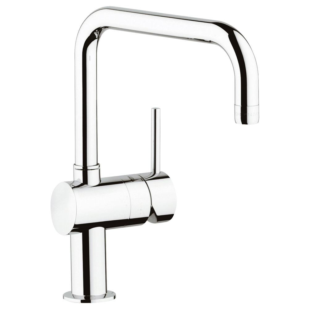 キッチン用混合栓のミンタは、スタイリッシュ・モダンな雰囲気と、シンクで行う作業に実用的な利点を兼ね備えています。すっきりしたフォルムが人目を惹くとともに、さまざまな便利な特徴が実用面のメリットを提供します。たとえば、アーチ型の吐水口は、かなり大きな鍋類にも容易に水を汲むことができます。
