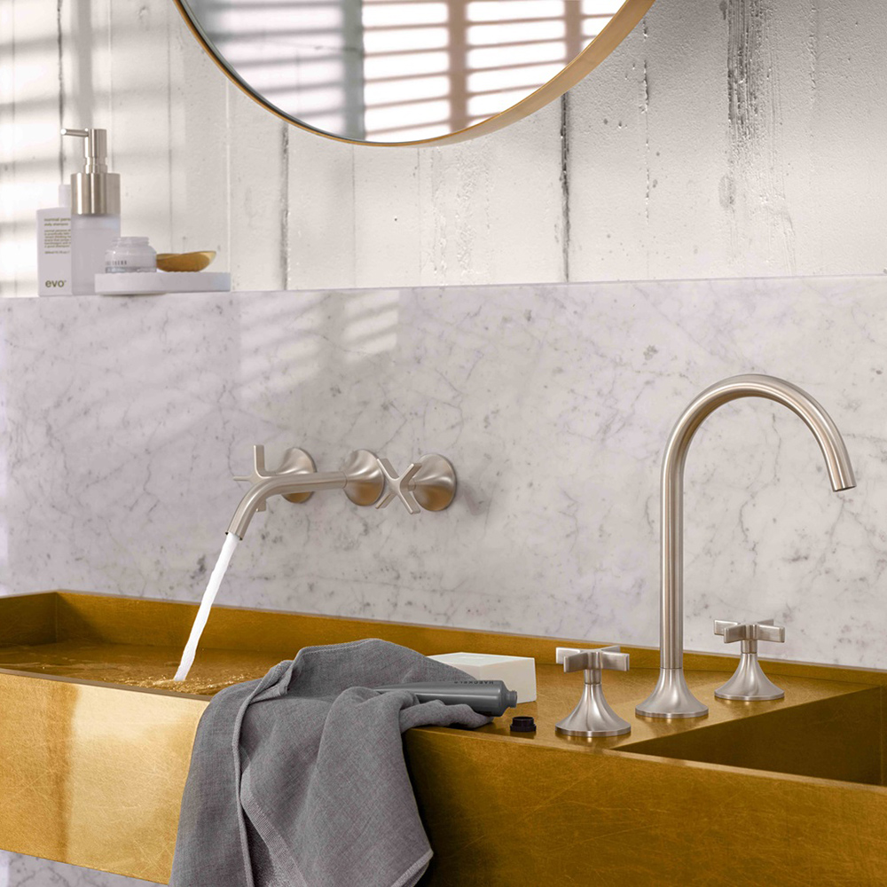 ドイツの最高級水栓金具ブランド・ドンブラハ。高純度で無垢の真鍮を材料とし、シリーズごとに違った工法を操ることのできるマイスターによって手作業で生み出されており、その独創的なデザインと洗練されたフォルム、品質の高さから、世界中の最高級ホテルや客船、個人邸などに採用され、人々を魅了しています。