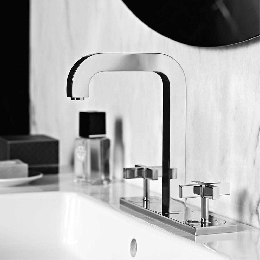 1901年創業のドイツの老舗水栓金具メーカー、ハンスグローエ社の「アクサー」ブランドは、製品にフィリップ・スタルクの他、アントニオ・チッテリオ、フェニックスデザイン等の著名デザイナーを起用。トータルにデザインした水栓・アクセサリーでプレミアムバスルームを演出いただける、個性・デザイン性を追求したプレミアムブランドです。