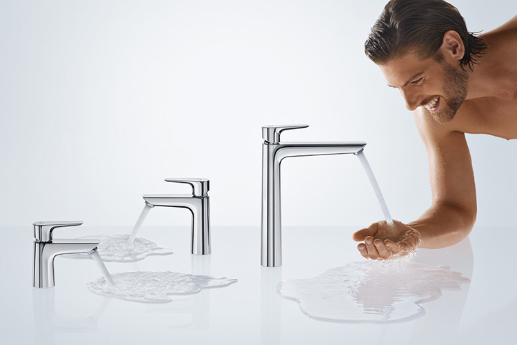 ハンスグローエブランドのタリスEは、ややテーパー気味になったボディデザインがエレガントな水栓金具シリーズです。なじみやすいハンドルデザインは、洗面ボウルを選びません。