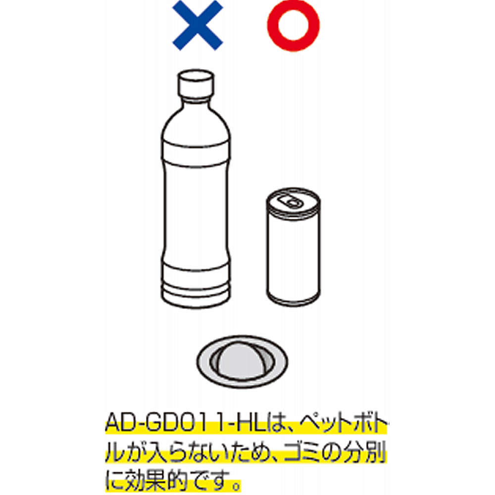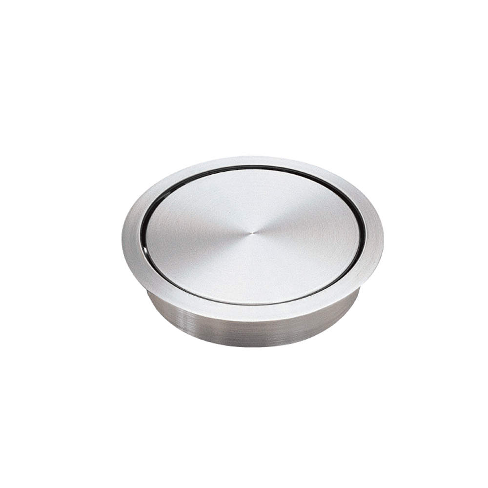 蓋の軸を中心からずらしているため、広い開口を実現しています。重り付きのため、使用後は蓋が水平な状態に戻ります。
