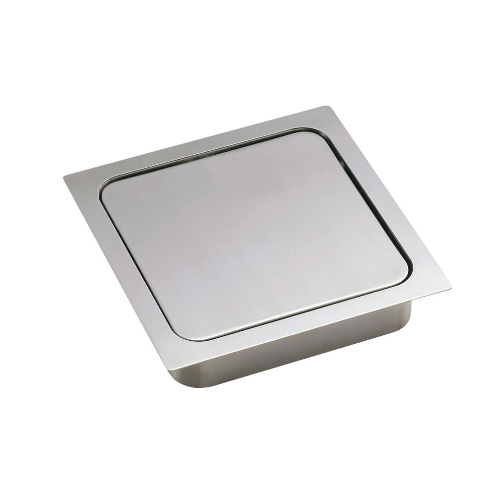 蓋の軸を中心からずらしているため、広い開口を実現しています。重り付きのため、使用後は蓋が水平な状態に戻ります。