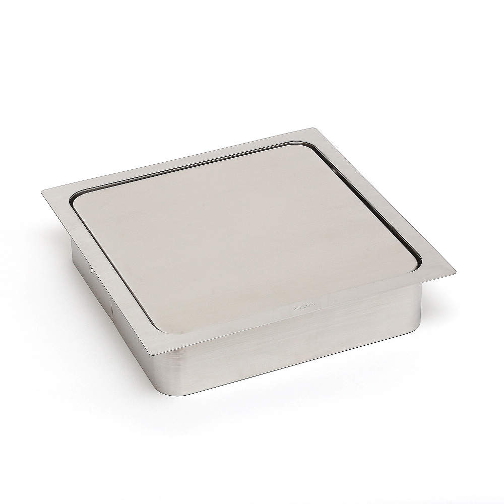 蓋の軸を中心からずらしているため、広い開口を実現しています。重り付きのため、使用後は蓋が水平な状態に戻ります。