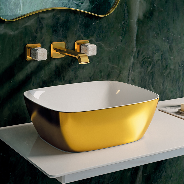 まるでジュエリーのようにエレガントでゴージャスなGOLD&SILVER、 その輝きには、アクセサリーでも多く用いられる18Kゴールドと、純度の高いシルバーを使用し、ジュエリーを生産するための伝統的な技術による仕上げを施すことで、宝飾品と同様の美しい輝きを放ちます。カタラーノ社のこだわるクラフトマンシップによって、同社の標準的な洗面器と同等の耐摩耗性の高い性能を維持する工法で製造されていますので、傷が付きにくく、美しく輝き続けるため、日常のお手入れも安心です。