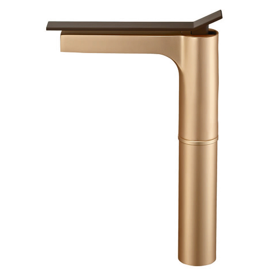 スパウトと平行にのびたロングハンドル。衝撃に強いアルミダイキャストを採用しています。主張をおさえたシンプルなシルエットは、洗面ボウルを選びません。