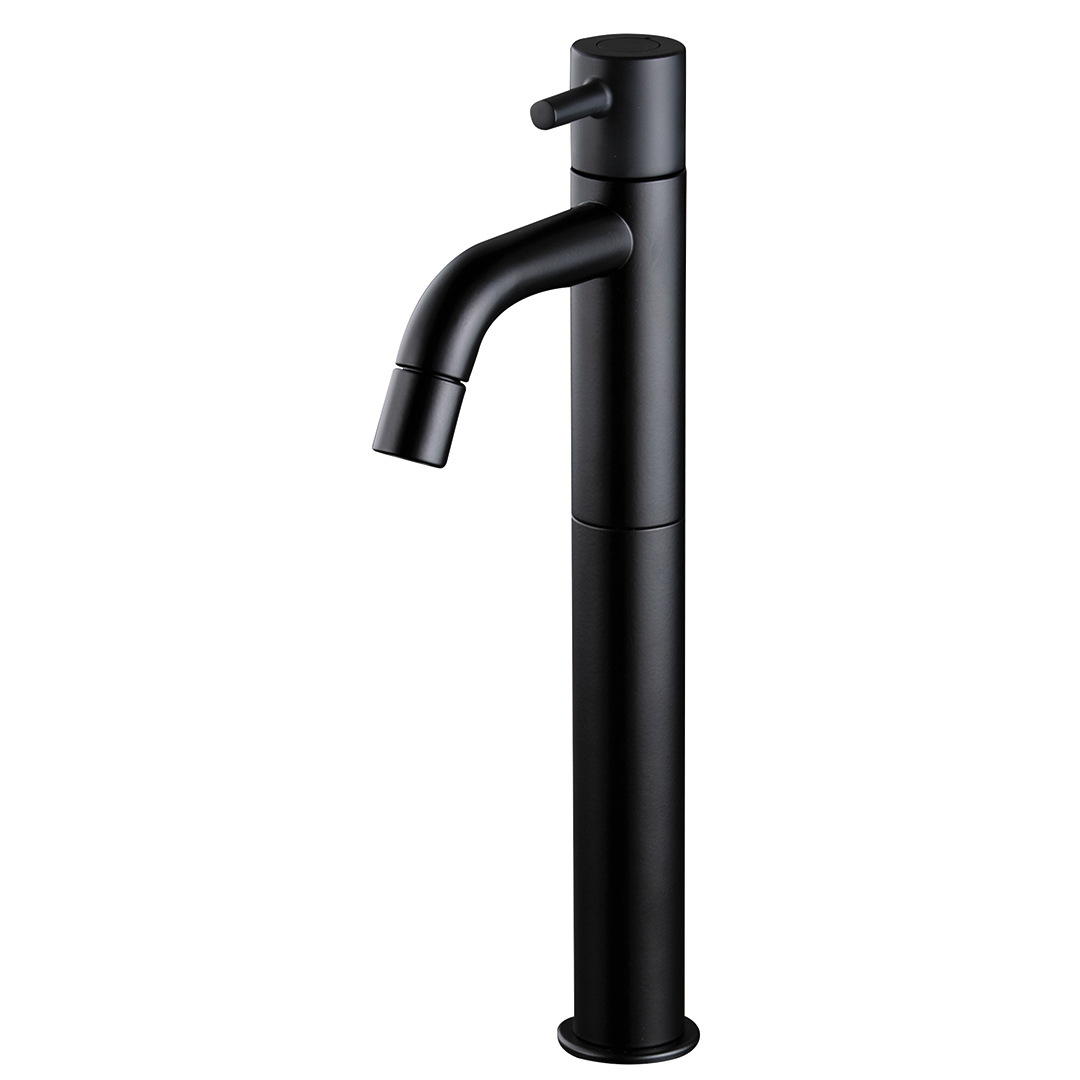 細くスッキリとしたデザインの単水栓。小型の置き型手洗器との相性は抜群。カラフルな水栓は、あなただけの個性的な水まわりを演出します。