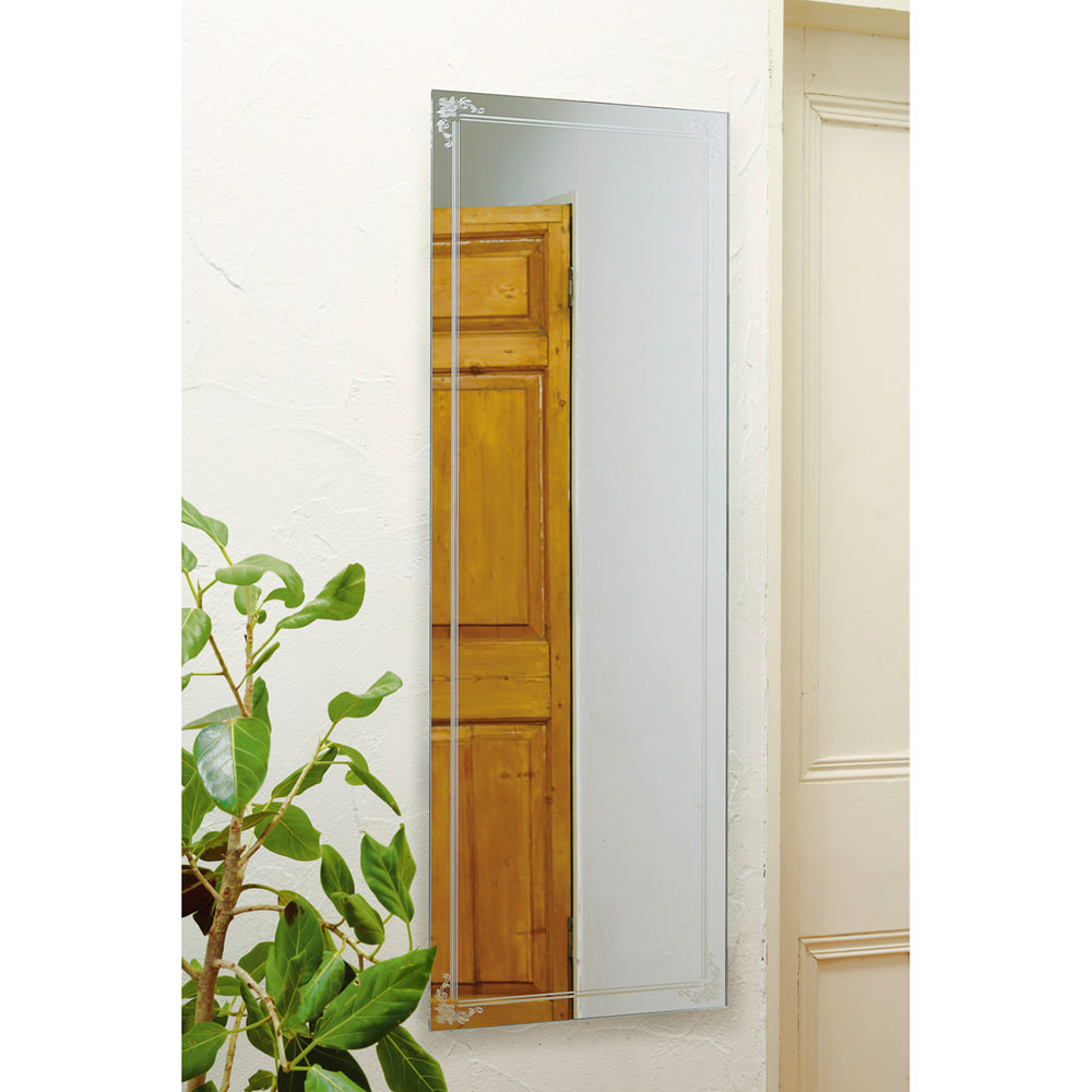 | 商品仕様 | ミラー取付方法についてはこちらをご参照ください 裏板12mm エッチング加工 吊り 圧着施工可 日本製 |
