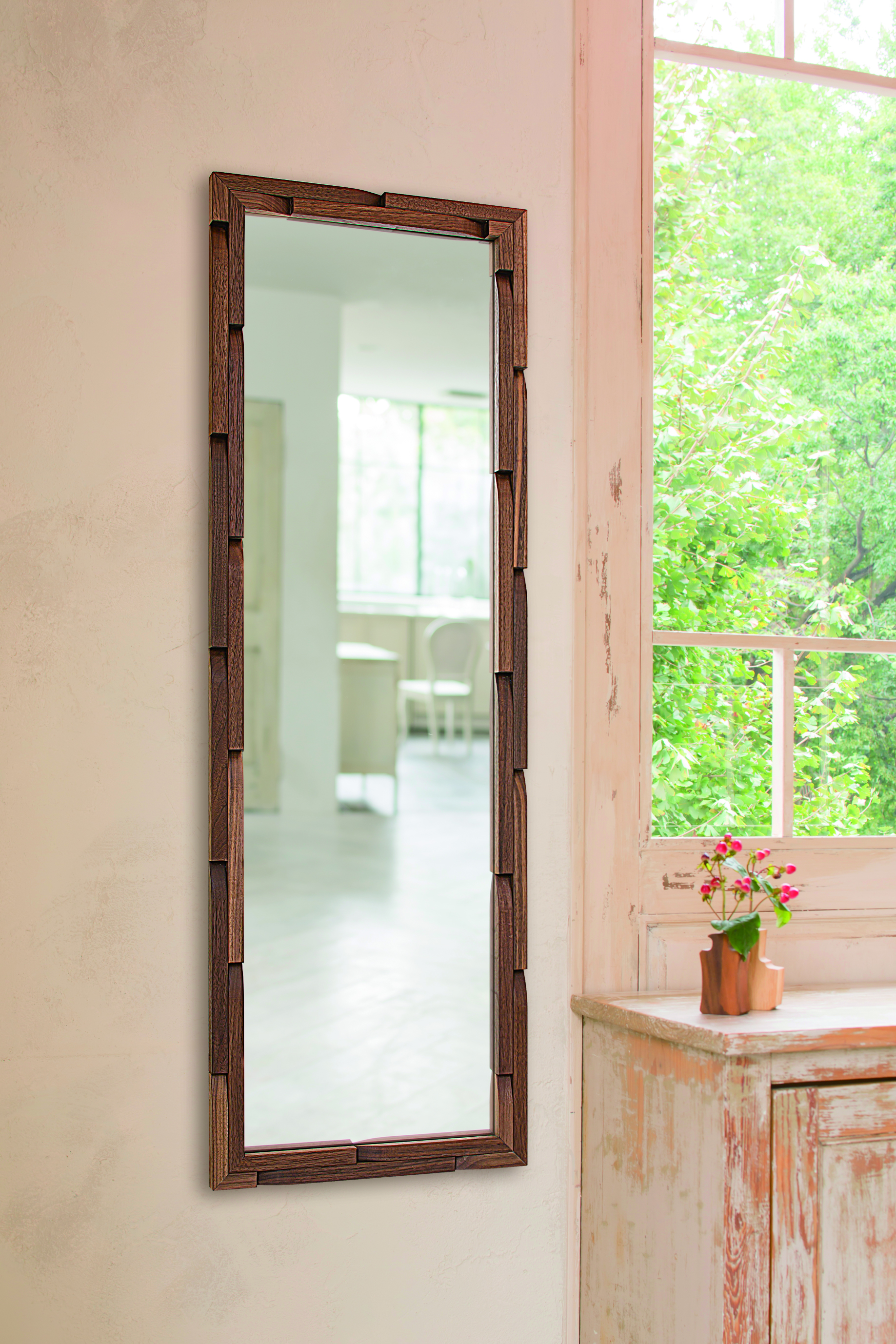 | 商品仕様 | ミラー取付方法についてはこちらをご参照ください フレーム巾40mm 木製(クルミ) 吊り 圧着施工可 日本製 |