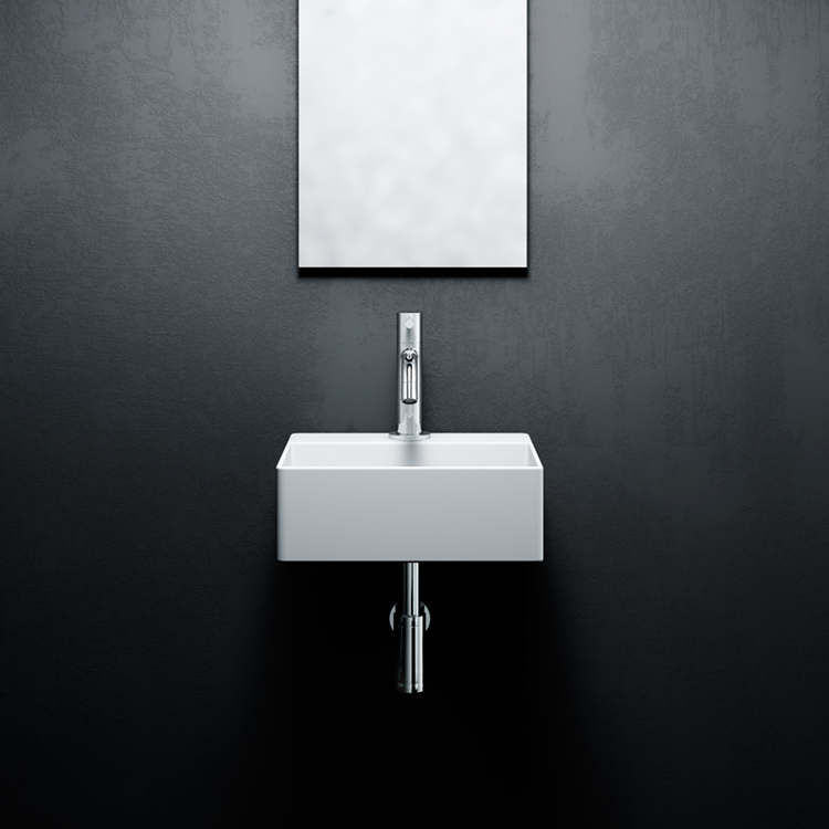 手洗器はオブジェのようなフォルムから研ぎ澄ませたミニマルなラインまで多様なデザインシリーズがあり、陶器はもちろんバサルト(玄武岩)やコンクリートといった多彩な素材、独自のスタイリッシュな排水金具、ビビッドカラーの排水栓がアクセントを添えます。また、水栓もグースネックタイプを含む立水栓と壁付け水栓が2シリーズ6種類のラインナップ。いずれのアイテムも同社のデザインに向ける情熱が細部にまで見受けられます。