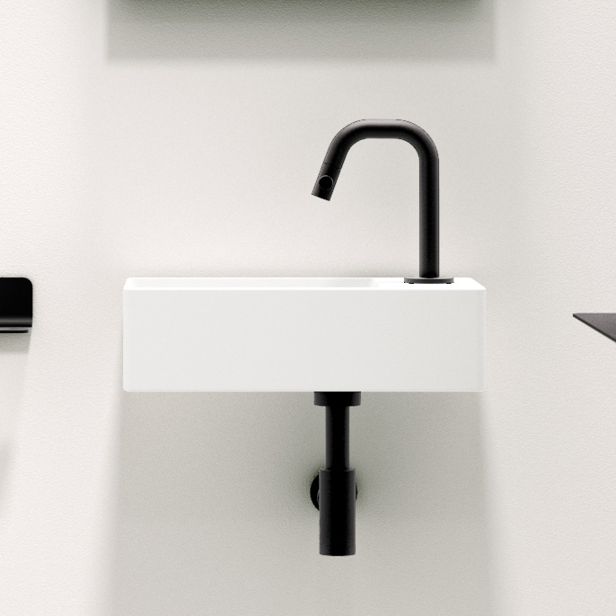 手洗器はオブジェのようなフォルムから研ぎ澄ませたミニマルなラインまで多様なデザインシリーズがあり、陶器はもちろんバサルト(玄武岩)やコンクリートといった多彩な素材、独自のスタイリッシュな排水金具、ビビッドカラーの排水栓がアクセントを添えます。また、水栓もグースネックタイプを含む立水栓と壁付け水栓が2シリーズ6種類のラインナップ。いずれのアイテムも同社のデザインに向ける情熱が細部にまで見受けられます。