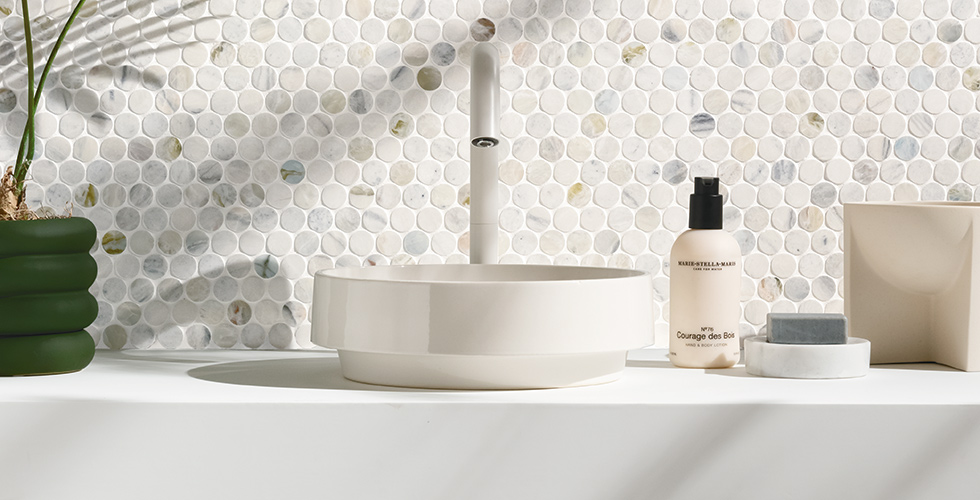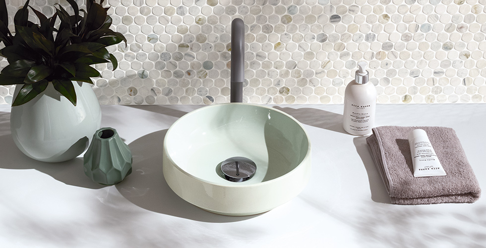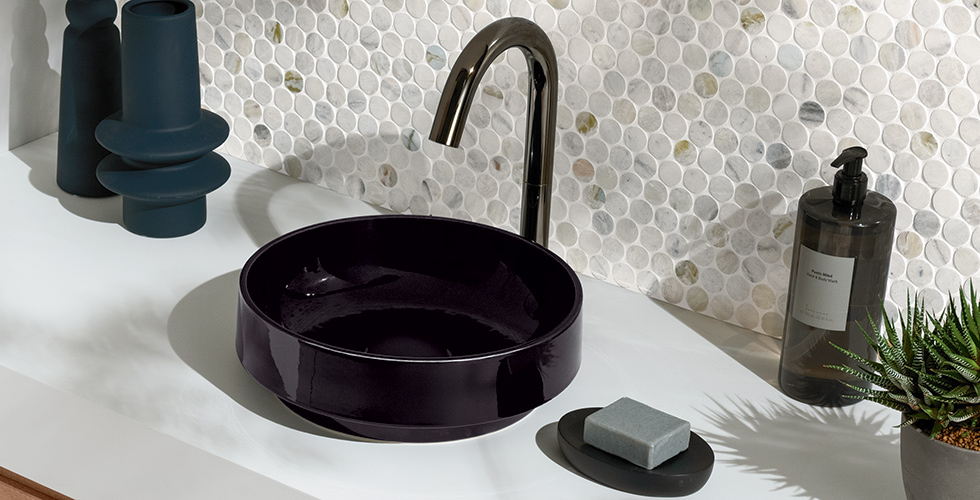 黒曜石、真珠、ホワイトソースをイメージしたニュートラルカラーとユニークなフォルムは、水まわりをセンスよく彩り、空間に一層の格調を与えます。