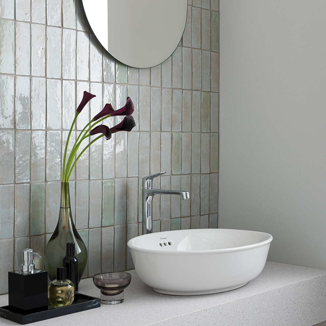 優しいラインのギルド置き型洗面器は、伝統的な曲線の美しさを現代に再定義する新鮮なデザイン。