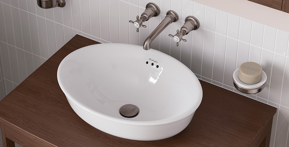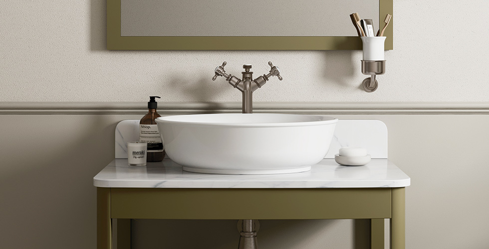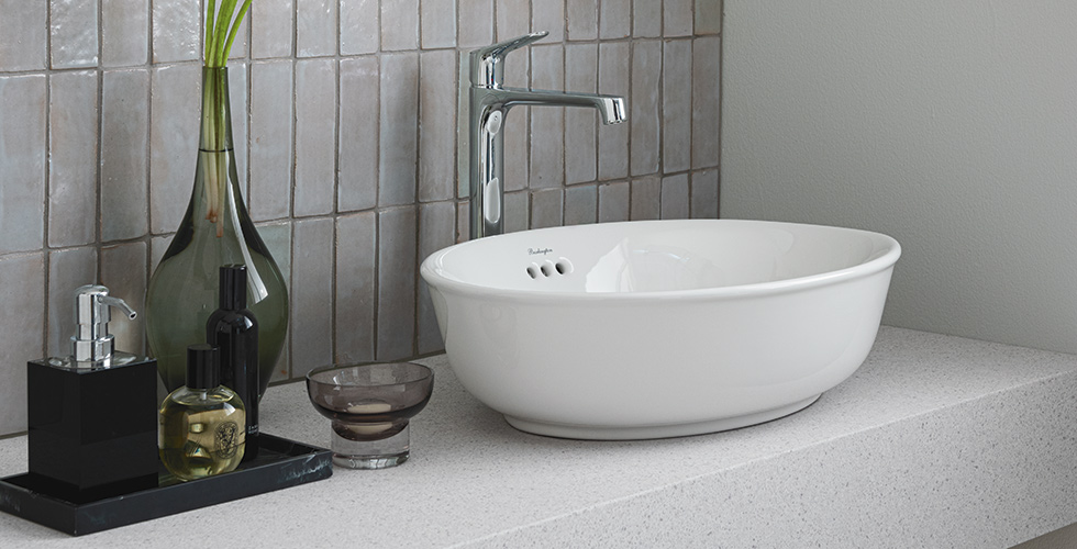 優しいラインのギルド置き型洗面器は、伝統的な曲線の美しさを現代に再定義する新鮮なデザイン。