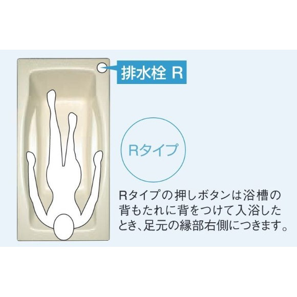 | 注意事項 | ※ワンプッシュ排水栓に関して【Lタイプ/Rタイプ】を必ずご指示ください。 ※ゴム栓への仕様変更、直接排水へ仕様変更、追焚穴加工を希望の場合は、関連商品のオプションよりご選択ください。 ※重さは、±5kgをご容赦ください。 |