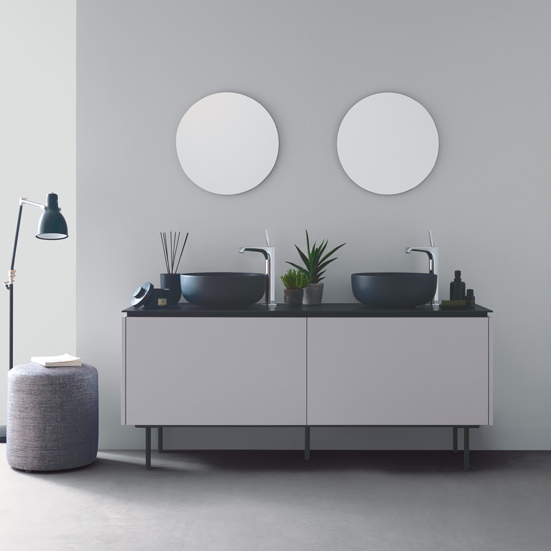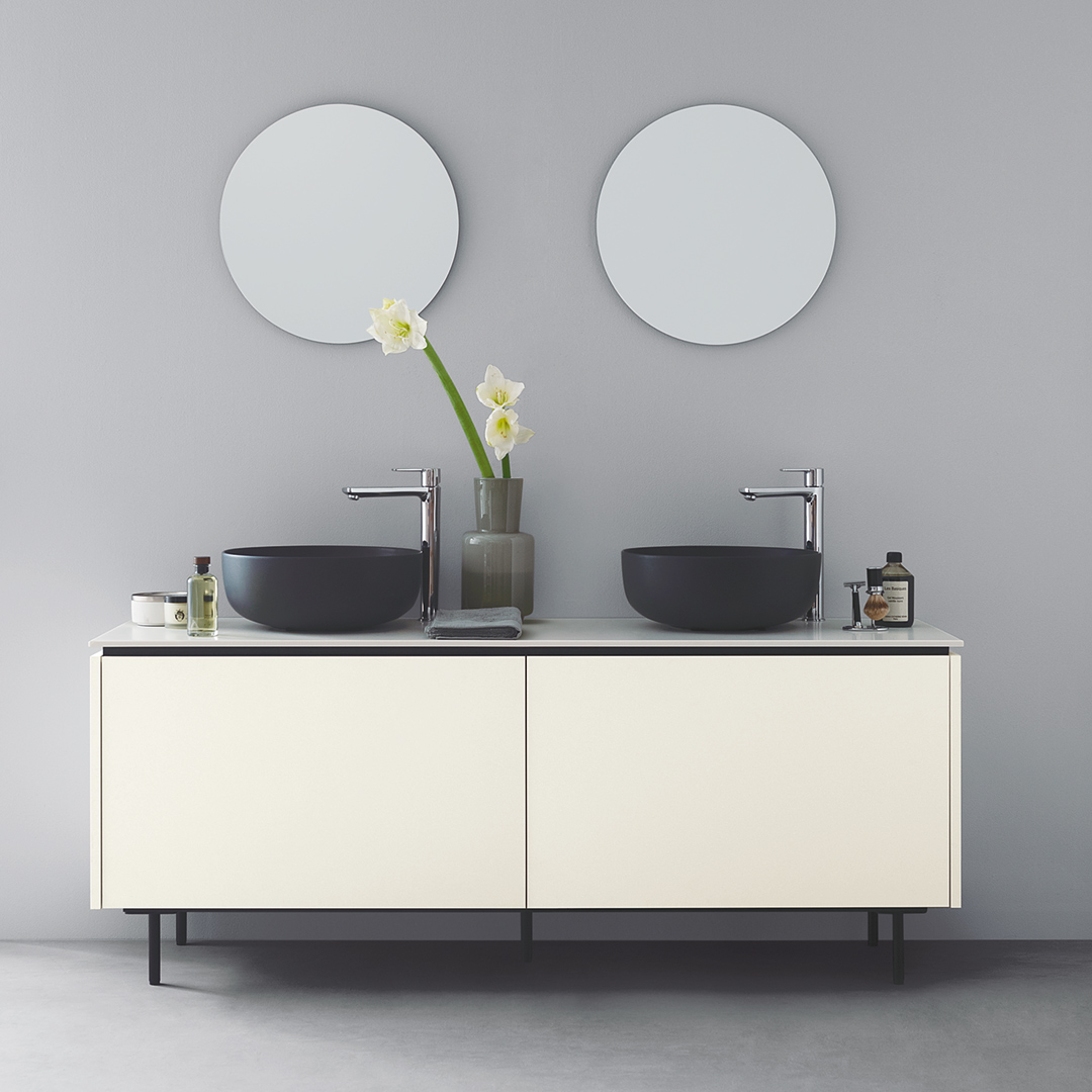 エラはトレンドを反映させた深型の置き型ボウルです。ヨーロッパのトレンドである高さのあるフォルムは存在感抜群。上質な「うつわ」を思わせるわずか5mmのスリムエッジは美しく、かつ機能性も維持しています。あたたかみのある上品なシルエットが水まわり空間に映えるプロダクトです。