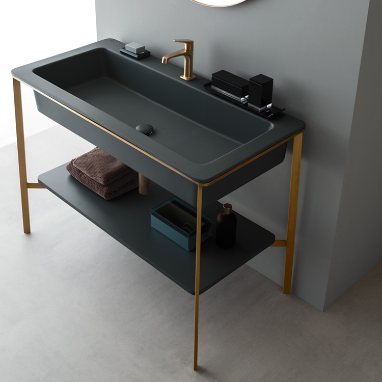 1100ミリのワイドなシングルシンクの洗面台です。スチールフレームにはめ込まれたセラミックのレクタングルボウルは優雅で贅沢な広々とした造作ながら、繊細に組み合わされた色とマテリアルに感嘆するはず。迫力のセラミックと家具との融合を見事に体現し、Red Dot Design Award 2017でベストオブザベストを受賞しています。