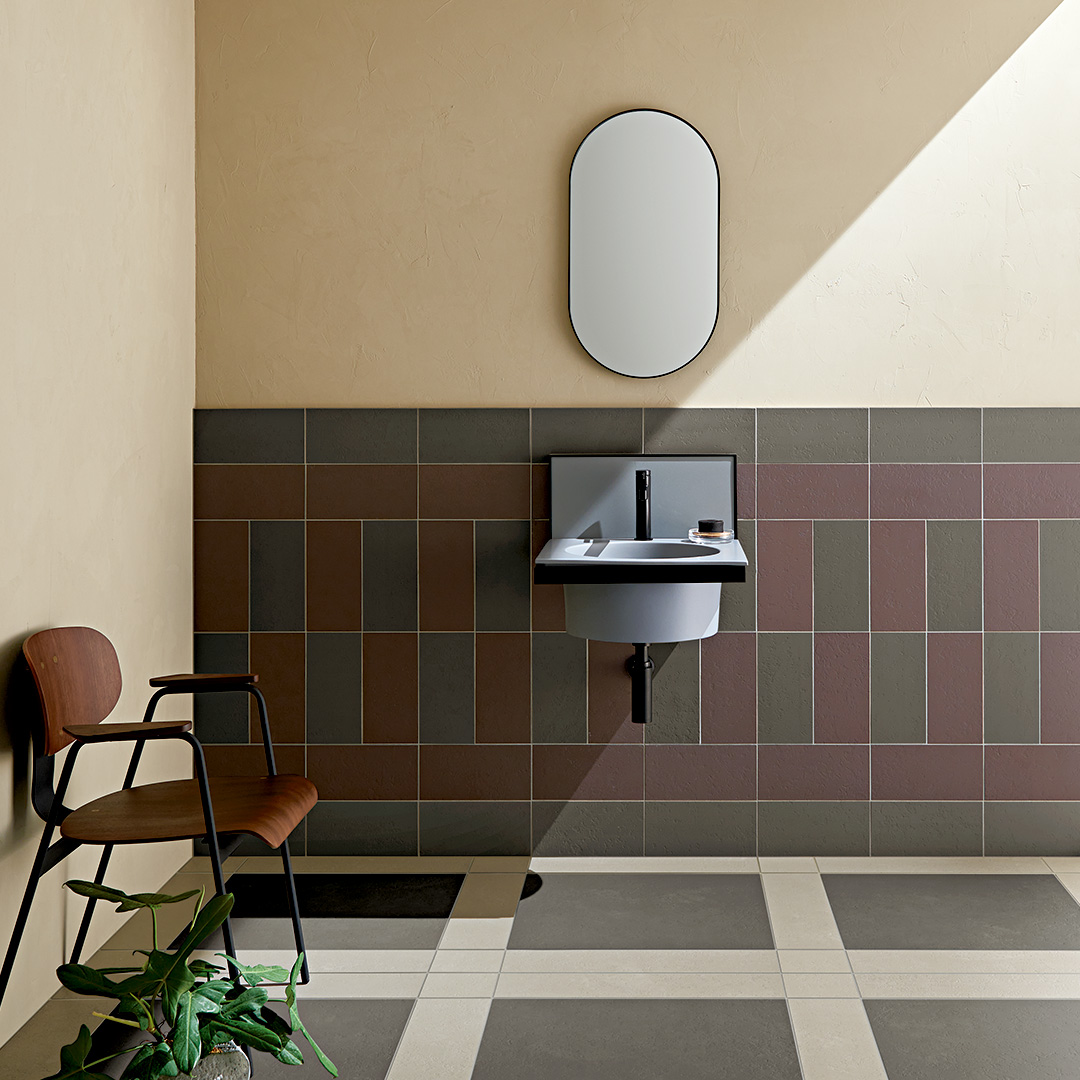 エルは、スチールフレームとセラミックシンクの組み合わせがユニークな壁掛けの洗面器です。