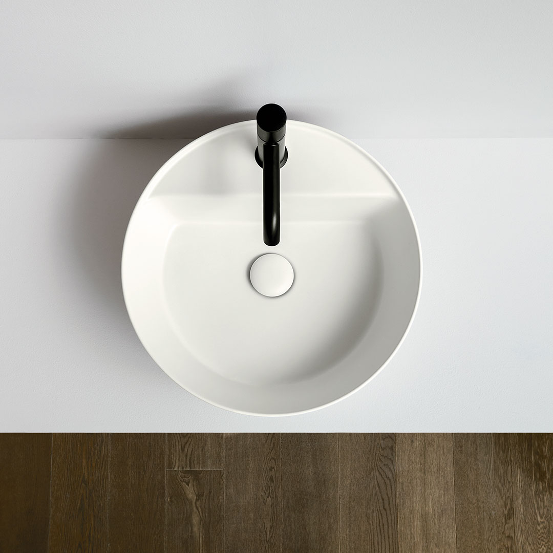 ハンディ45は、洗面にも、手洗いにも使えるサイズに加え、あふれ防止のオーバーフローがついており、非常に汎用性の高いモデルです。
