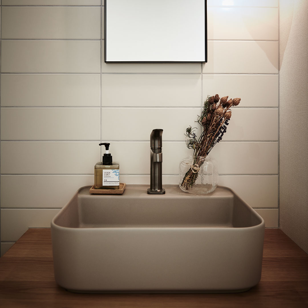 シンプルなデザインで人気のシュイコンフォートより、水栓穴付きのモデルです。置き型・壁付けとしてお使いの幅が広がります。シュイコンフォートシリーズならではの一切の無駄を排除したフォルムは健在で、モダン・シャープな空間に。ウルトラスリムエッジを備え、440mmサイズでありながら使いやすいシンクスペースを確保。 まさにCOMFORT(快適)なプロダクトです。