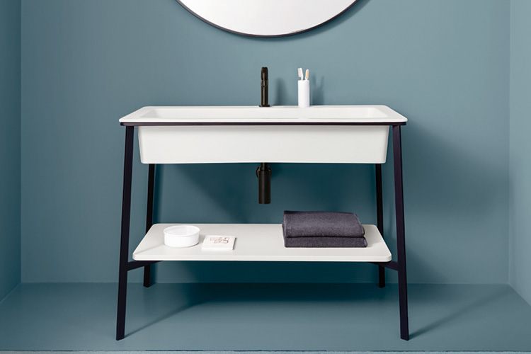 カティーノレクタングルは、1100ミリのスーパワイドなシングルシンクの洗面台です。キッチンシンクに匹敵する広々としたシンクは、優雅で贅沢なイメージに。フレームとセラミックシンクの組み合わせは、色の妙をどこまでも堪能できます。